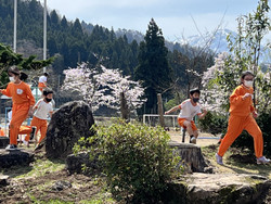 5・6年体育は桜が舞い散る中、グラウンドで体つくり運動を行っていました。みんなで体を動かすって楽しいね。みんな笑顔で頑張っていました。