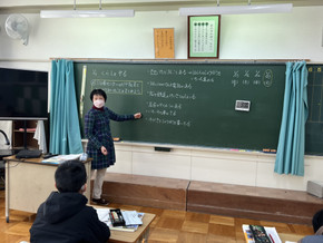 3・4年生:国語 3年生は詩の工夫を楽しもうで、詩のクイズを出していました。テストの真っ最中は、4年生。がんばれ!
