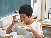 今日のメニュー:ごはん、牛乳、大根のみそ汁、ちくわの天ぷら、煮びたし